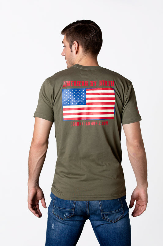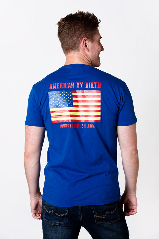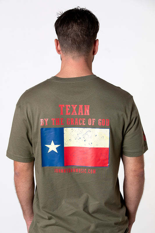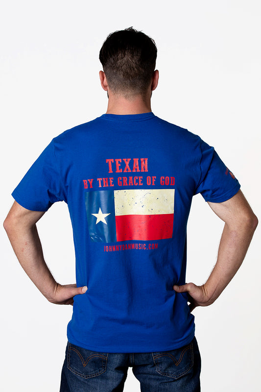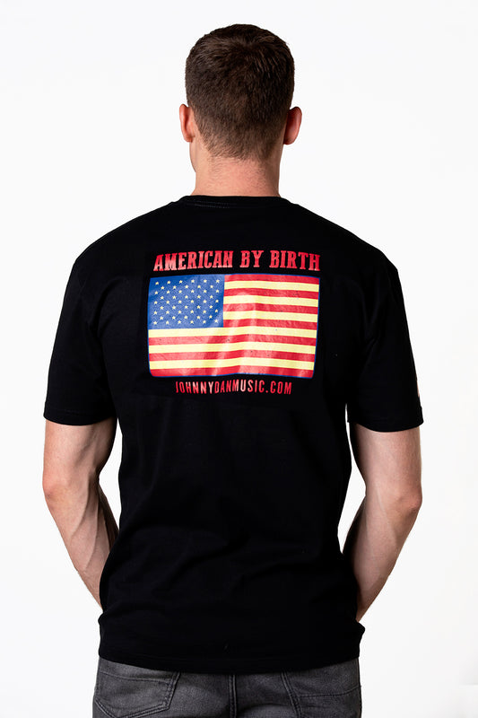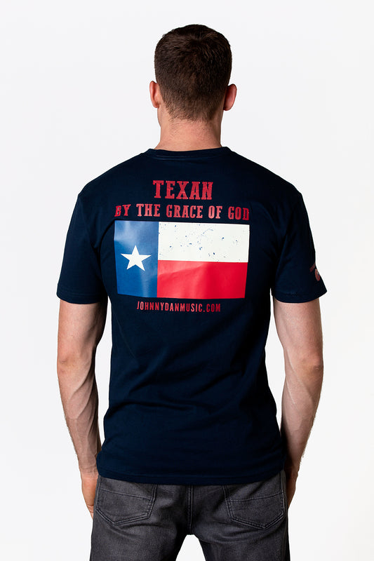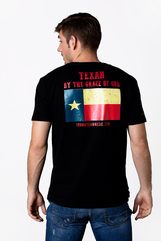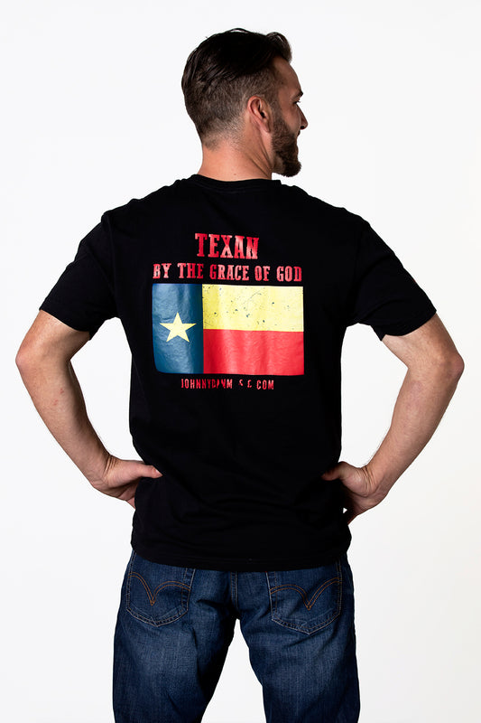 Men's Large Flag American by Birth, Texan by the Grace of God Black T