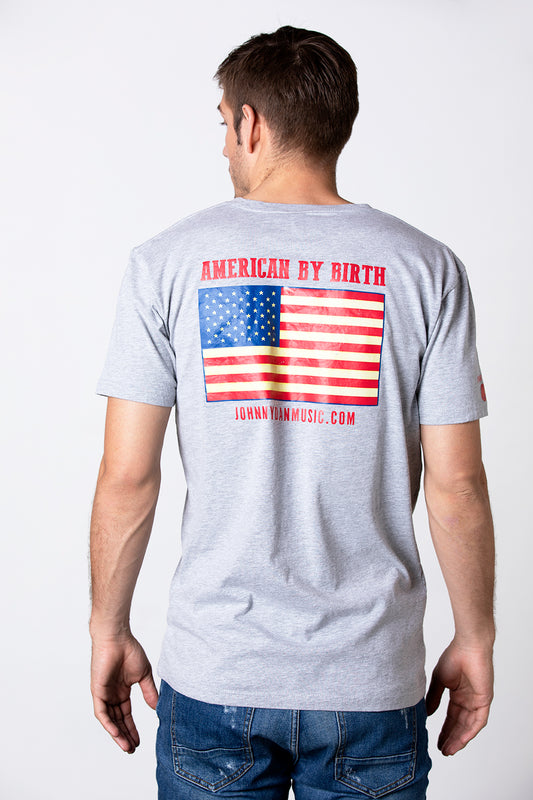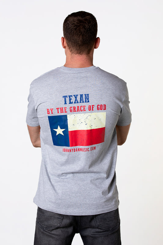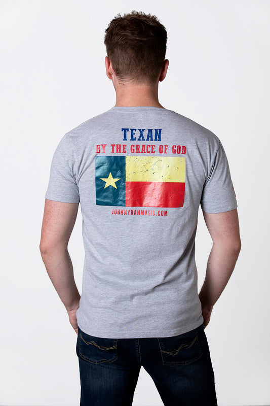 Men's American by Birth, Texan by the Grace of God Grey V Neck